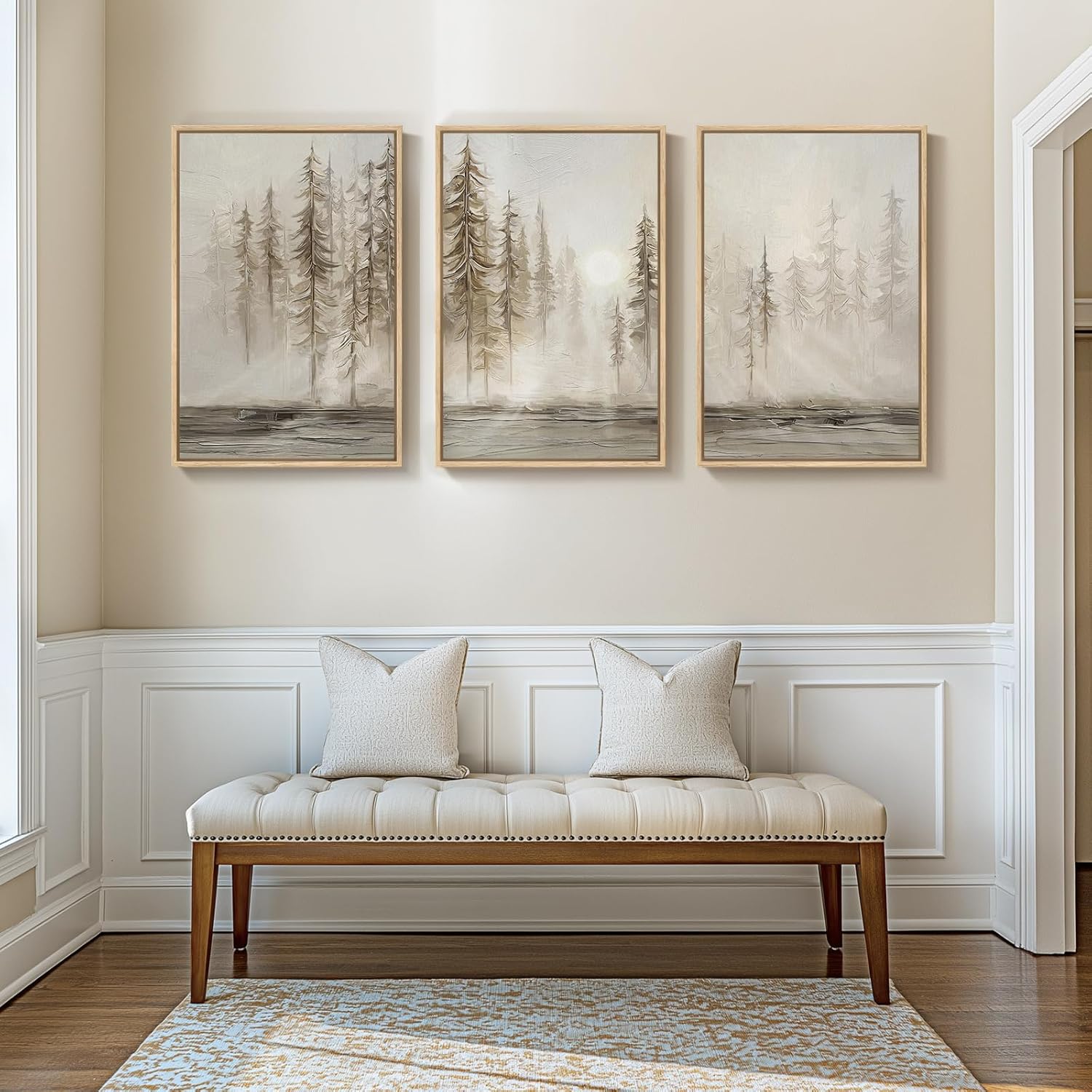 Framed Netural Wall Art for Living Room, Large 3 Piece Abstract Pastel Grunge Forest Landscape Tree Canvas Artwork Set, Modern Art Decorative Nordic Painting Picture Prints for Hallway Office 24x36 In