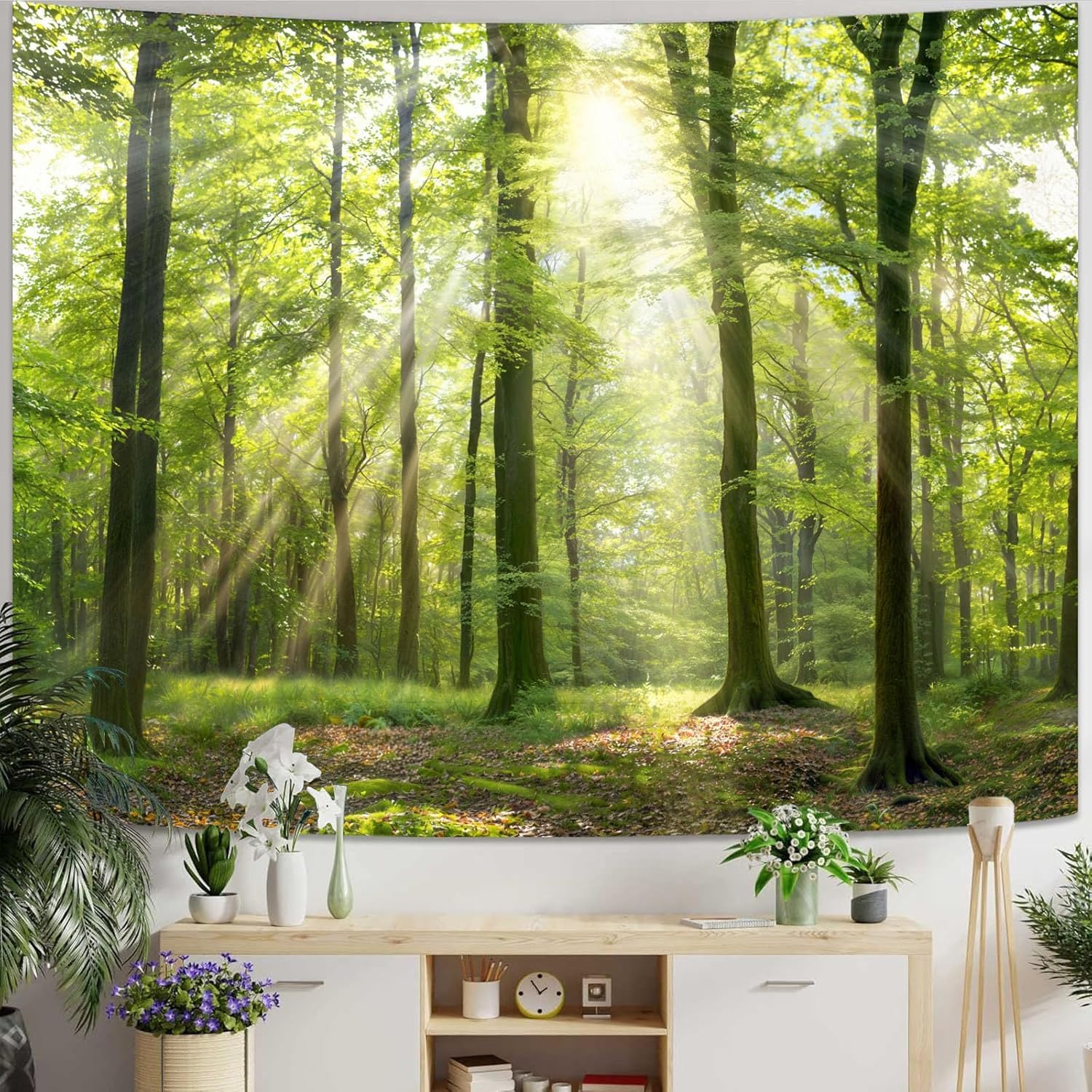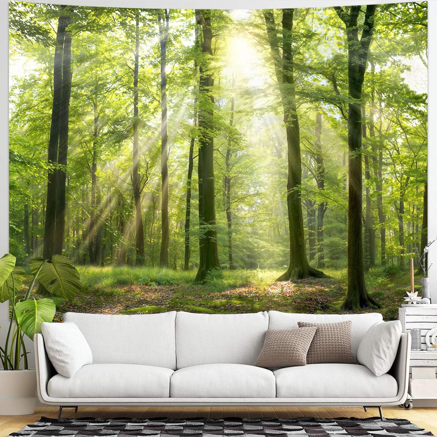 Lunerfex Tyndall Effect Forest Nature Tapestry, Sunlight Streaming Through Trees Wall Hanging for Bedroom and Living Room Decor, 7090 Inches